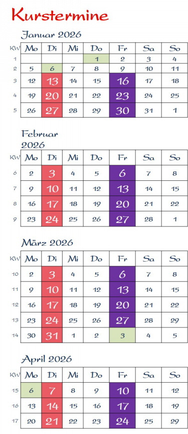 - weitere Termine nach Absprache (ab 3 Personen)